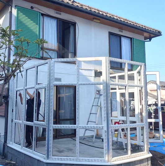 通常お客様邸での施工の場合、コンサバトリー以外の基礎、床、電気などは