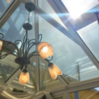 おやすみ前に2階のベランダから撮影しました! 普段とは違う方向から撮影するとコンサバトリーのイメージがまた変わって見えてきます☆ 屋根のカーテンを開けてあるので室内が良く見えて、 シャンデリアの灯りが雰囲気よく演出してく …