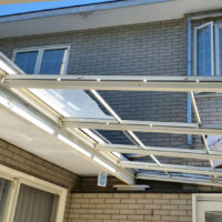 前回から続きましてどんどんコンサバトリーを建ててまいります☆ 屋根フレームがかかったら屋根材の複層ポリカーボネイトを被せて圧着します(`・ω・) ちなみにポリカーボネイトは各箇所ごとのサイズに合わせてカット加工がされて …