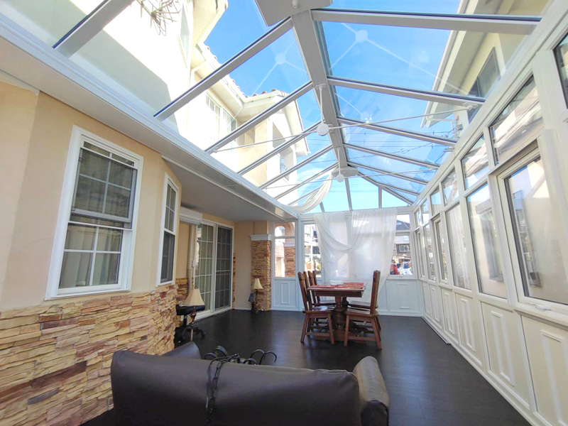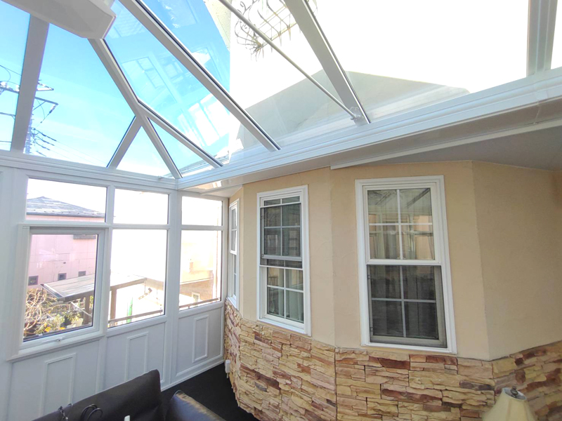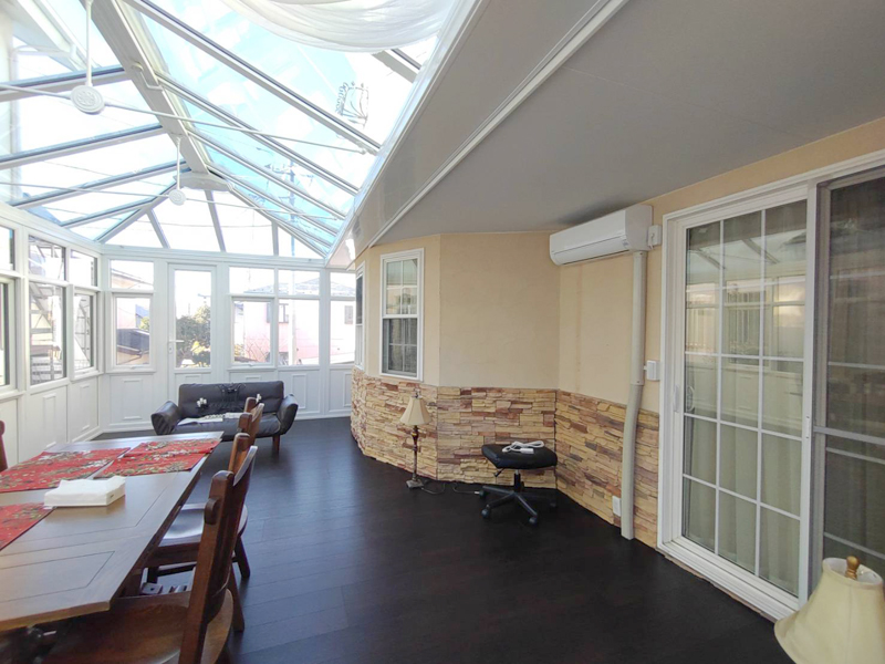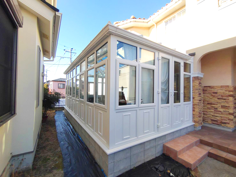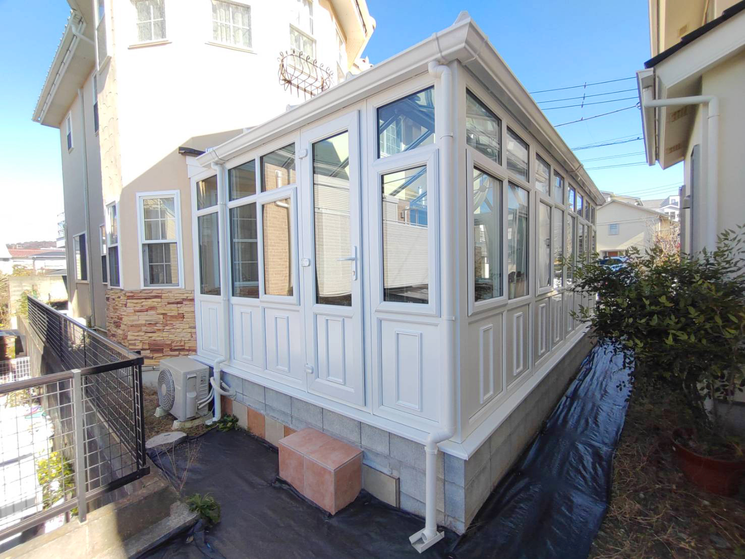 平面ではない凹凸のある住宅にコンサバトリーをうまく施工した事例です。